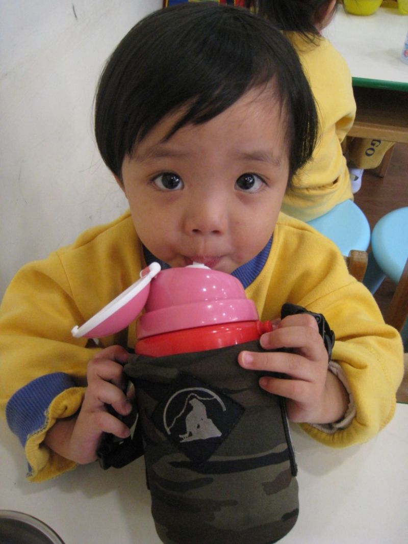 印沅已經將水喝完囉!真棒