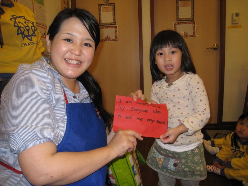 Mimi老師和Miki老師戴上可愛帽子迎接小朋友
