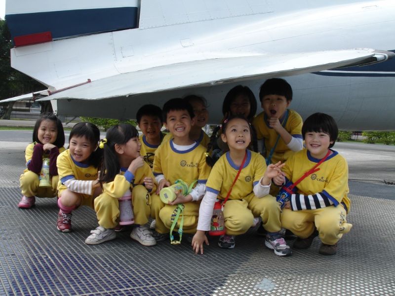 大飛機下的小朋友