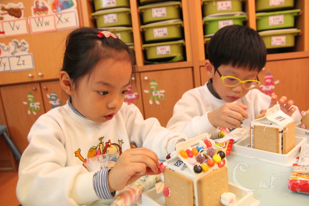 師生一起製作糖果屋
