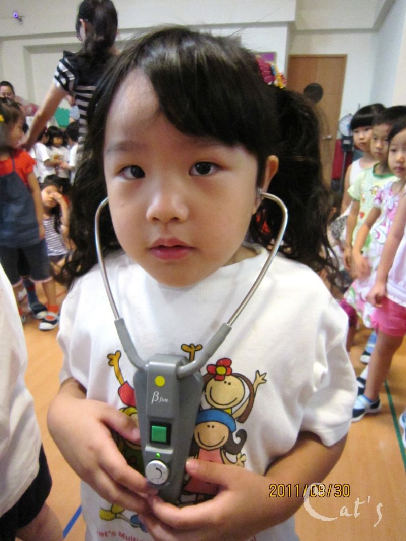 K班的孩子認真聽著心跳