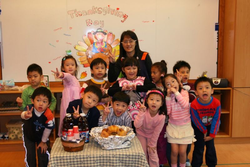 小幼班的小朋友聽著老師說感恩節的由來