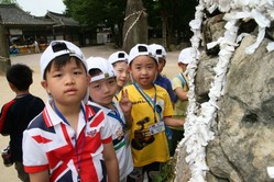 孩子們嚀聽韓國導遊Alan老師介紹農舍的典故