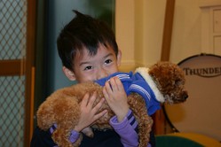 Isabell很勇敢地抱狗狗