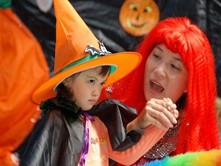 Louise的打扮好萬聖節的恐怖氣氛
