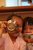 拿著碗玩的璇璇和伯諺