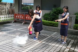 素珍老師很勇敢地示範滅火器的使用