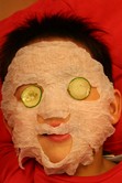 新鮮的小黃瓜片搭配面膜真是棒