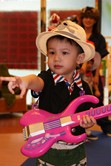 棋棋穿著牛仔的裝扮,很開心喔