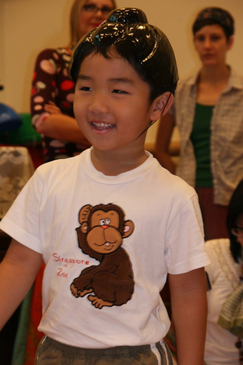 P1班的外語老師Febie也是搞怪地將襪子穿在頭上