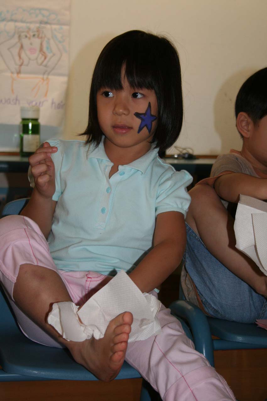 奕學開心地體驗臉部彩繪