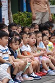 中班的小朋友也專心地看著扯鈴表演