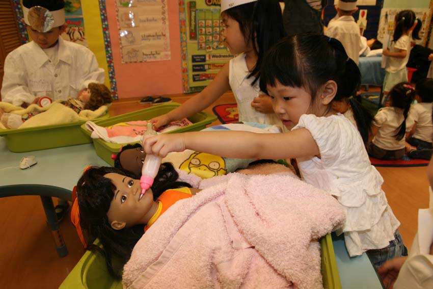 小班的Kiki正在接受中醫的把脈