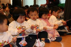 Baby班的Sara也認真地綁上祈福卡喔