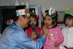Gary園長開心地與小朋友分享薑餅
