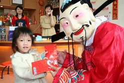 柔葇高興的領到財神爺的紅包