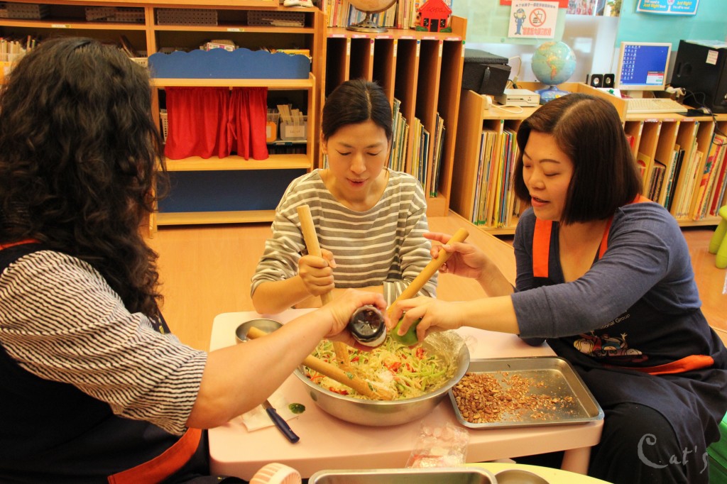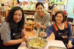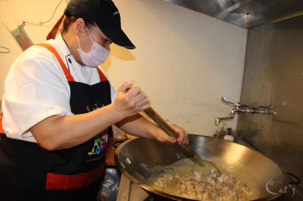 大廚阿姨也忙著煮美味的綠咖哩雞肉飯