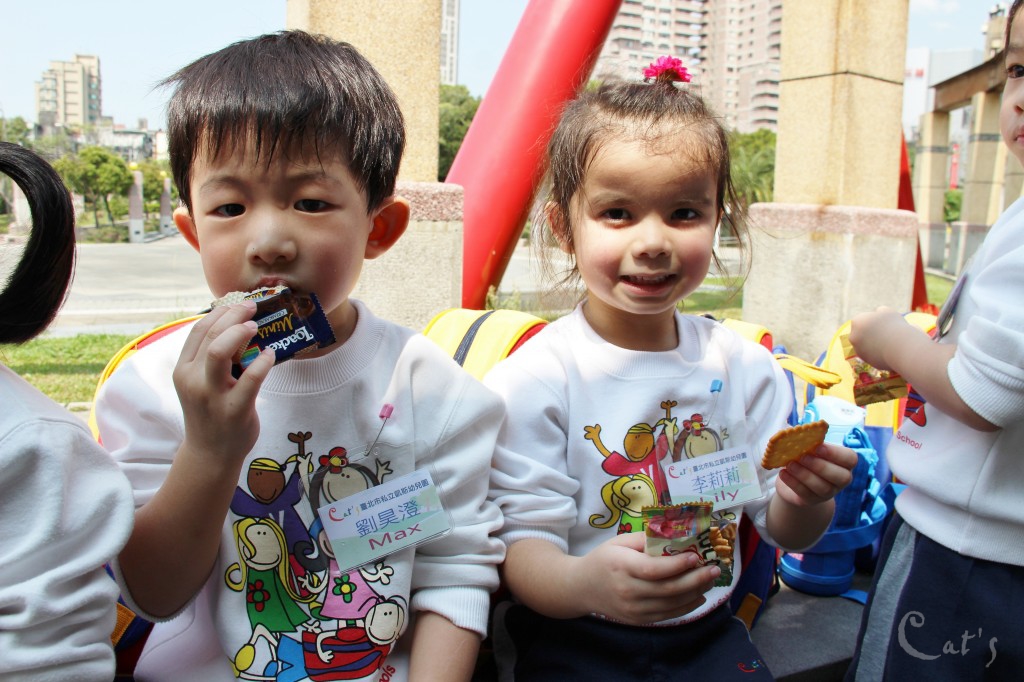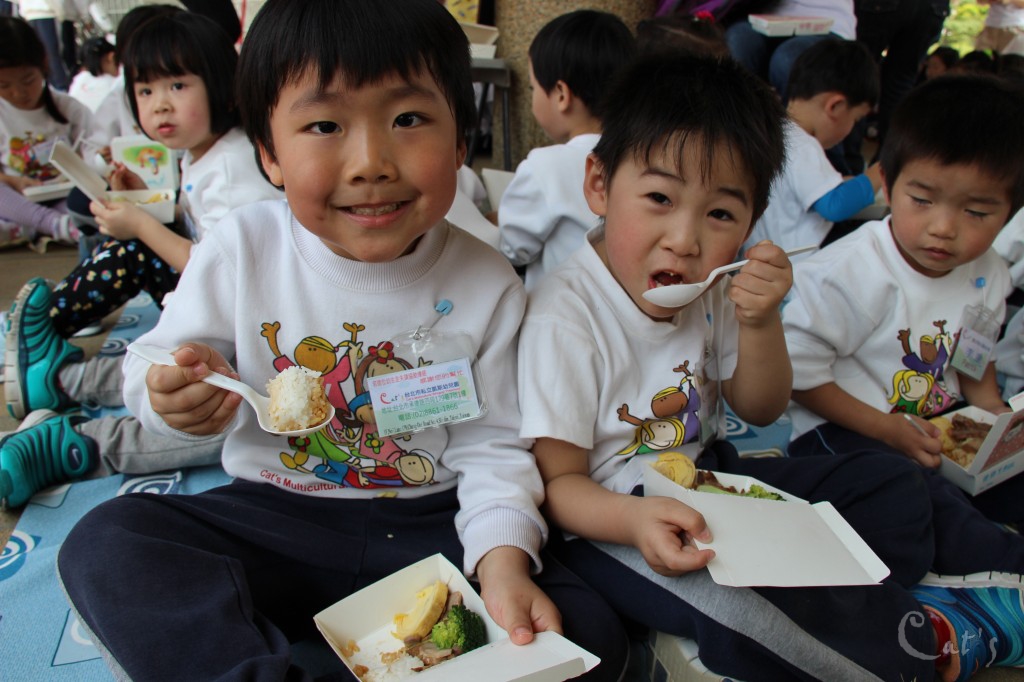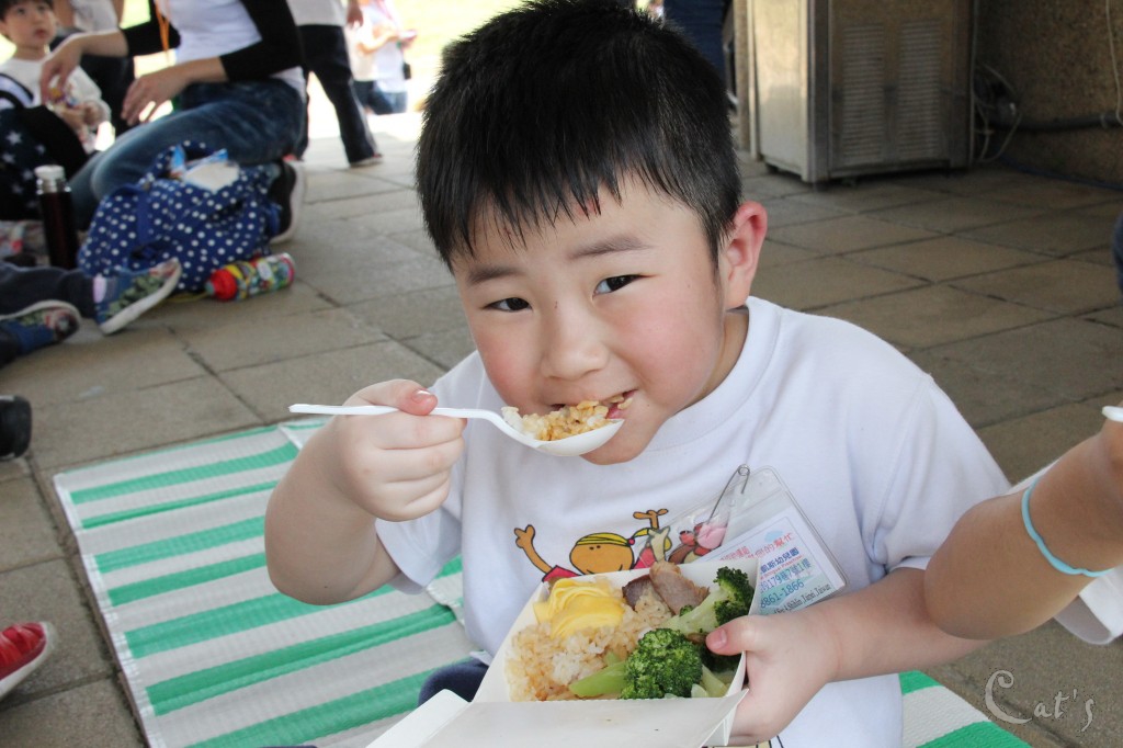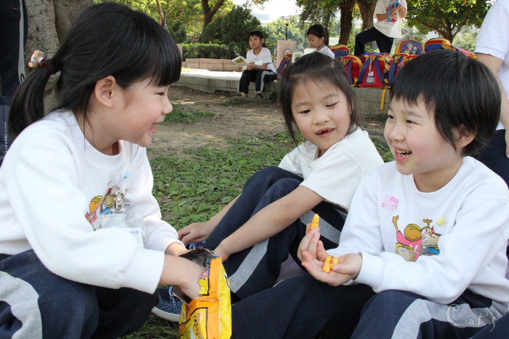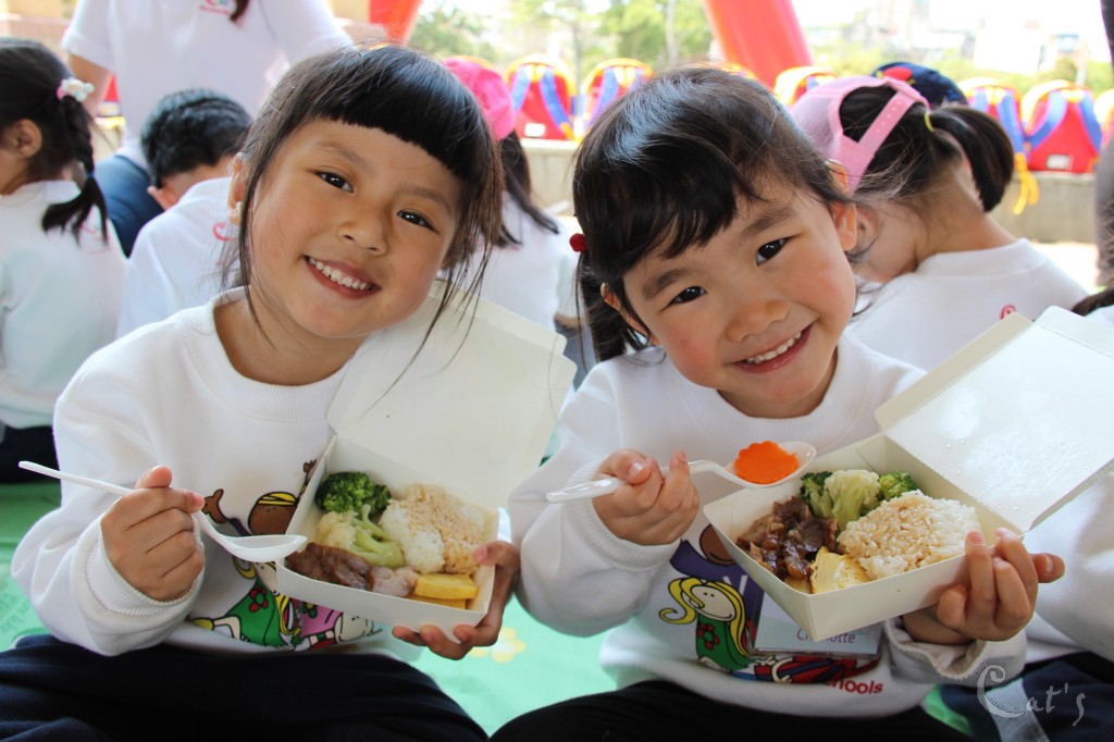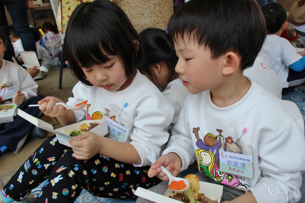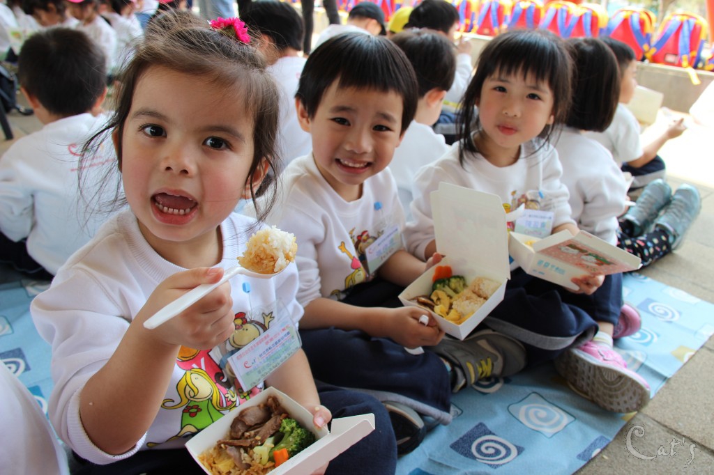 孩子們在中庭享用美食