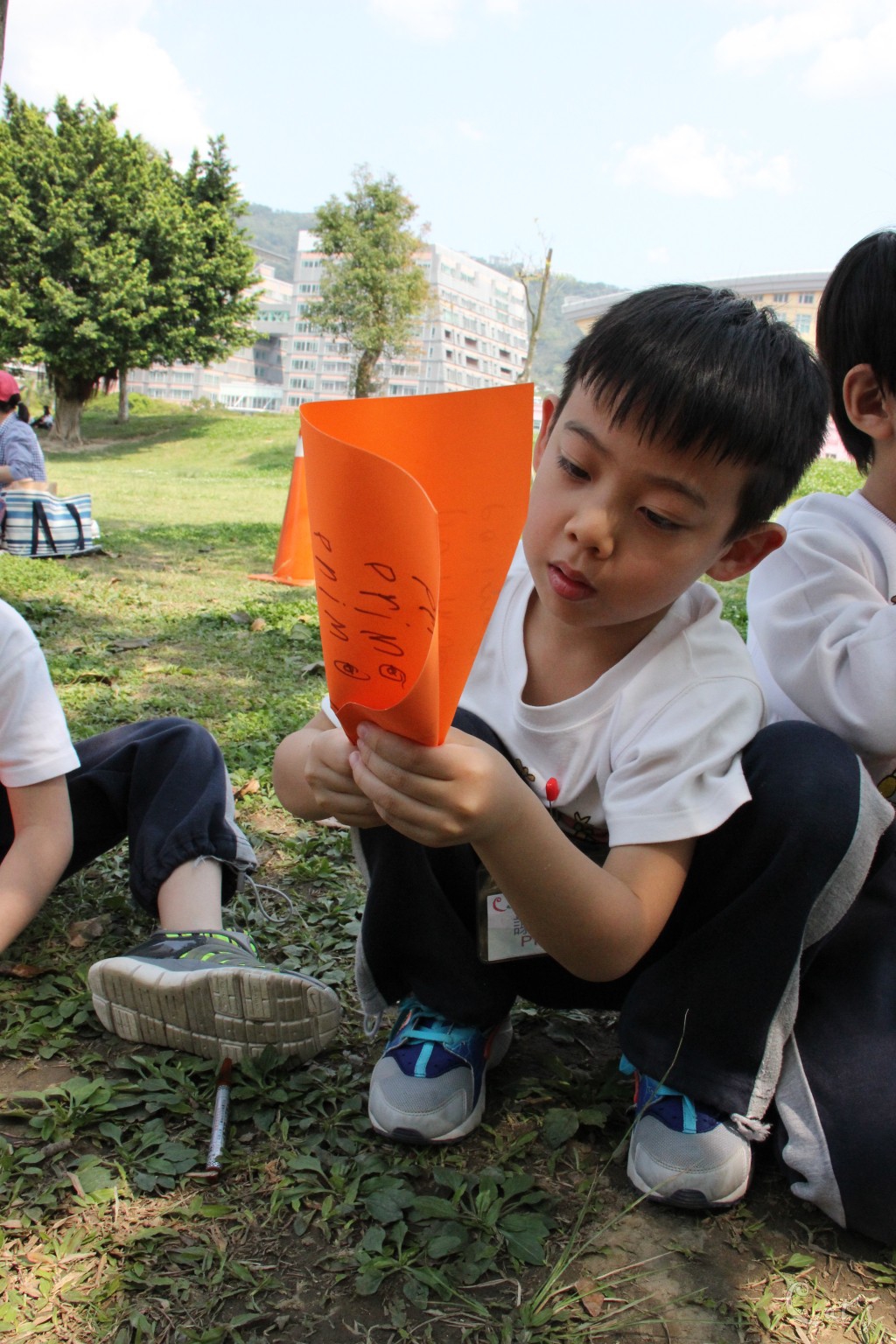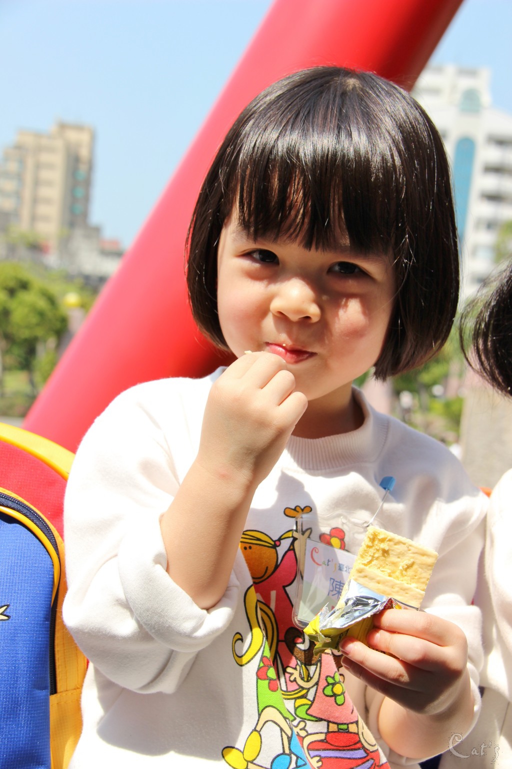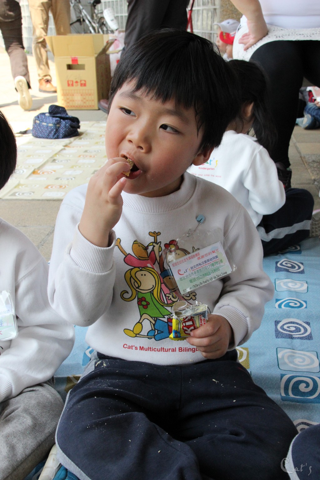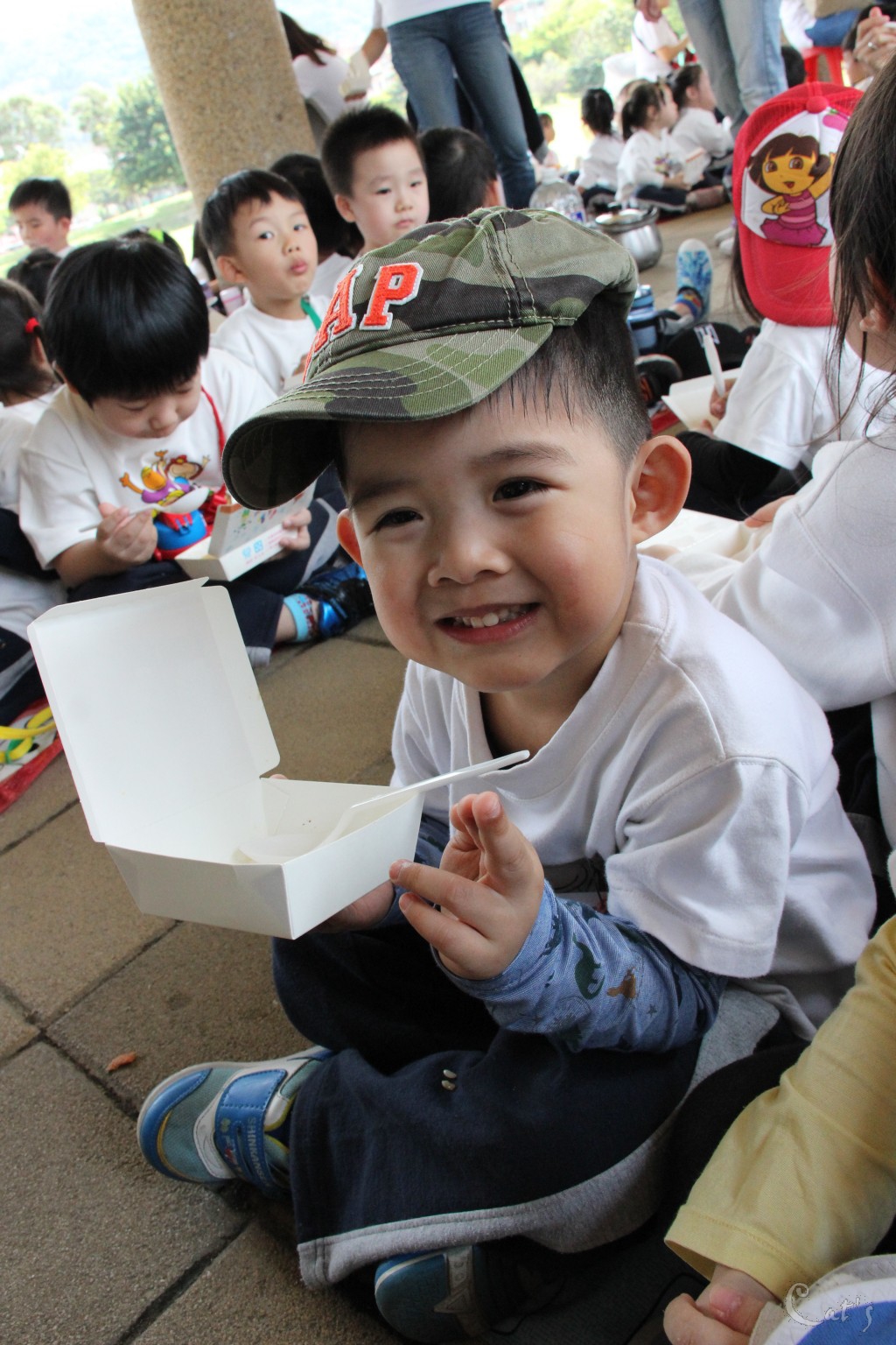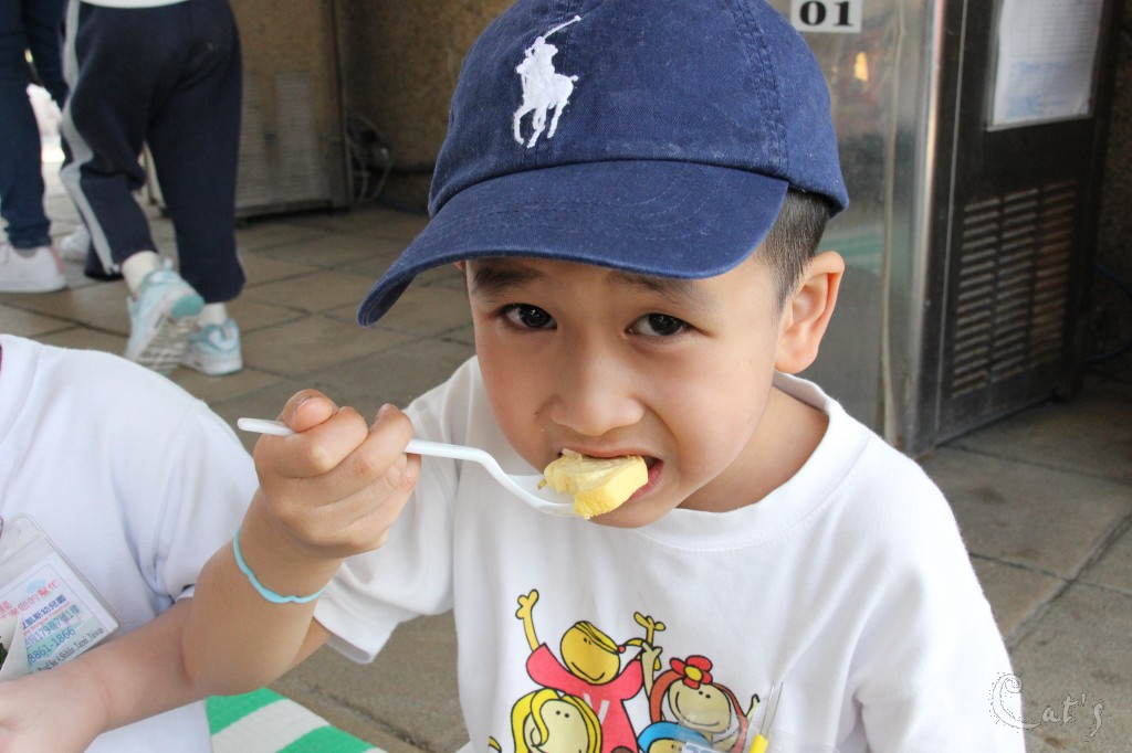 孩子們在中庭享用美食
