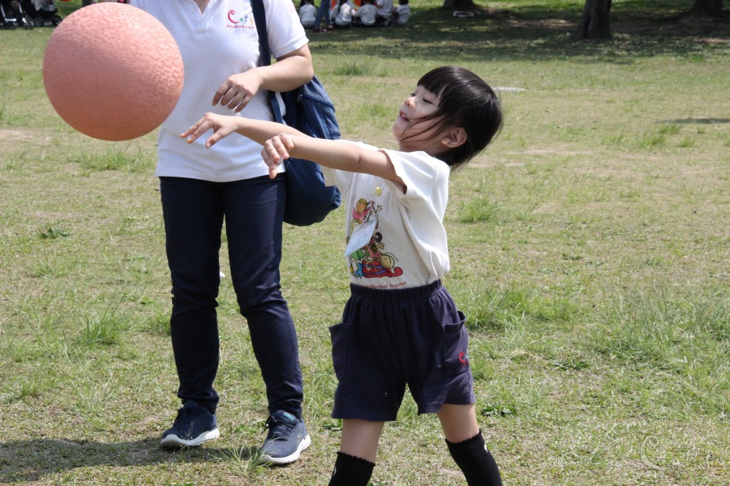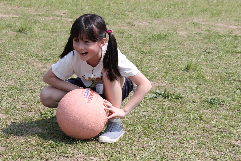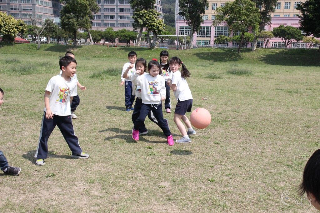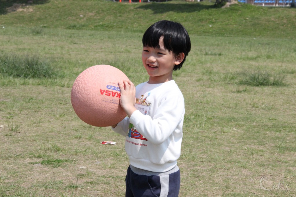 小朋友開始擲球