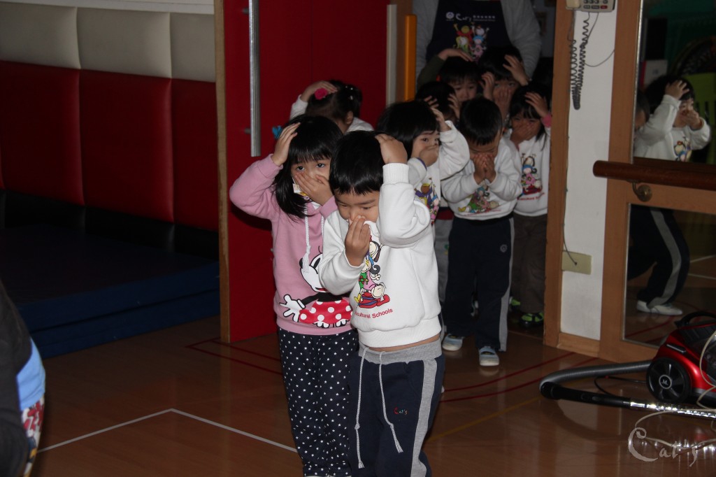 全校師生趕緊逃至中庭廣場