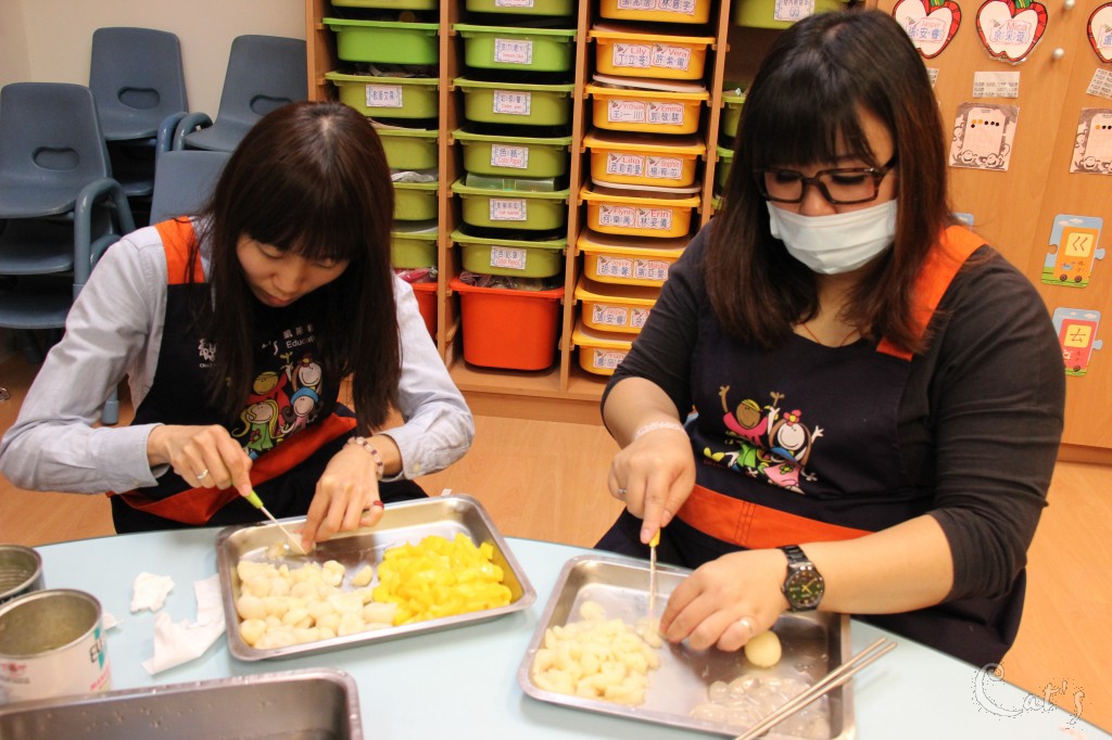 幫忙將食材切小塊