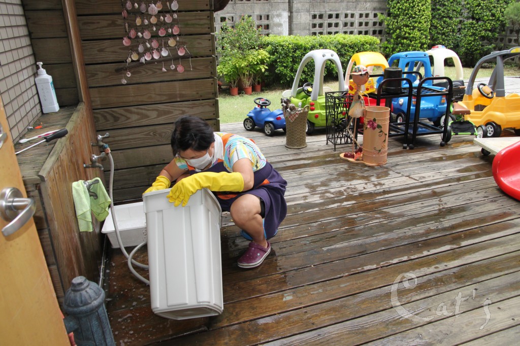 環保阿姨進行整潔維護