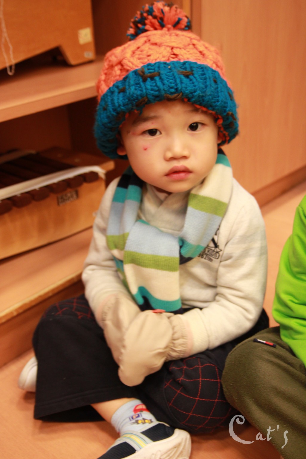 條紋圍巾配上草苺手套也是絕配呢