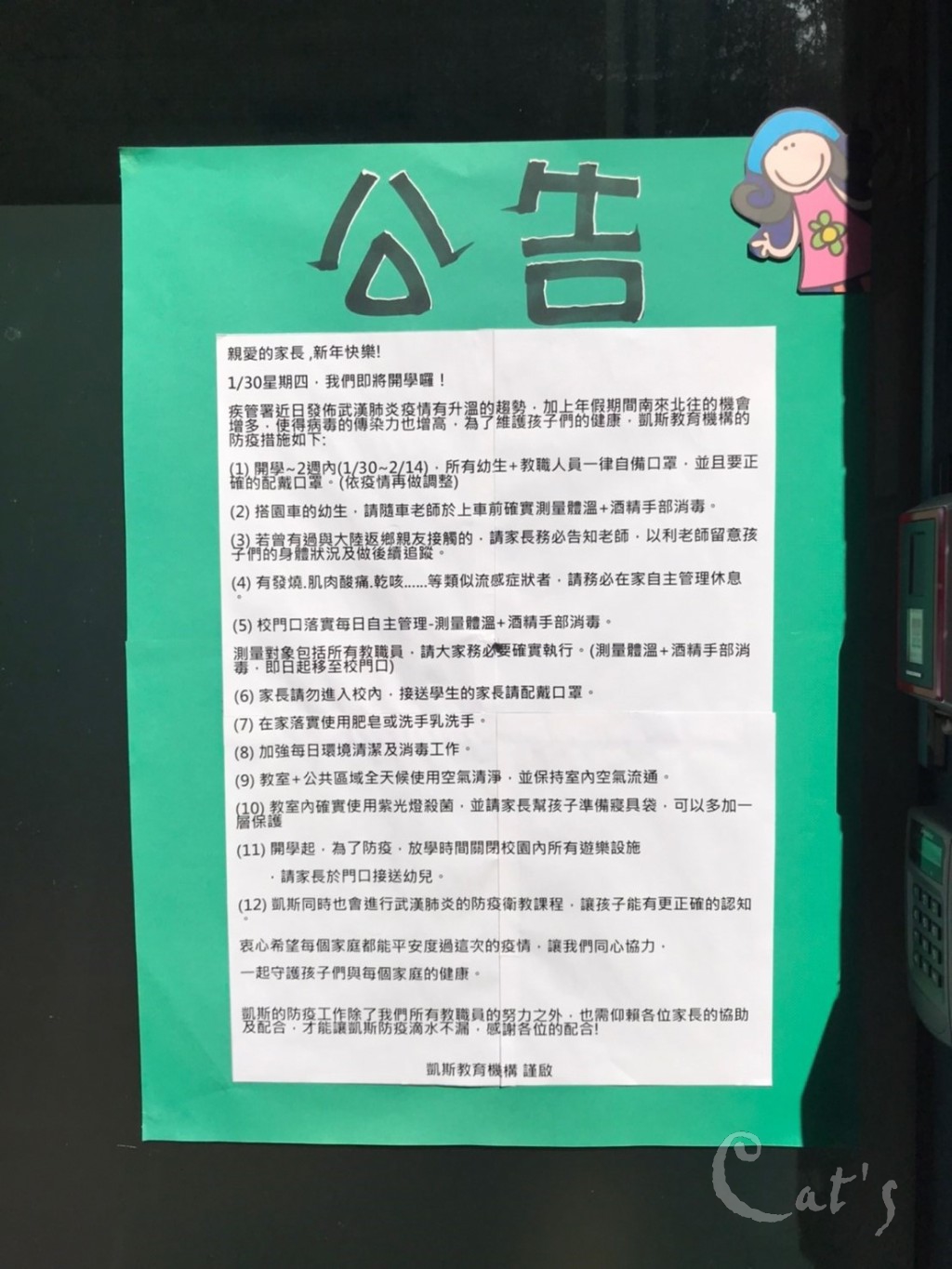 校門口公告及防疫海報的張貼