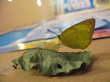 Yoyo看著羽化出來的蝴蝶,感到很新奇
